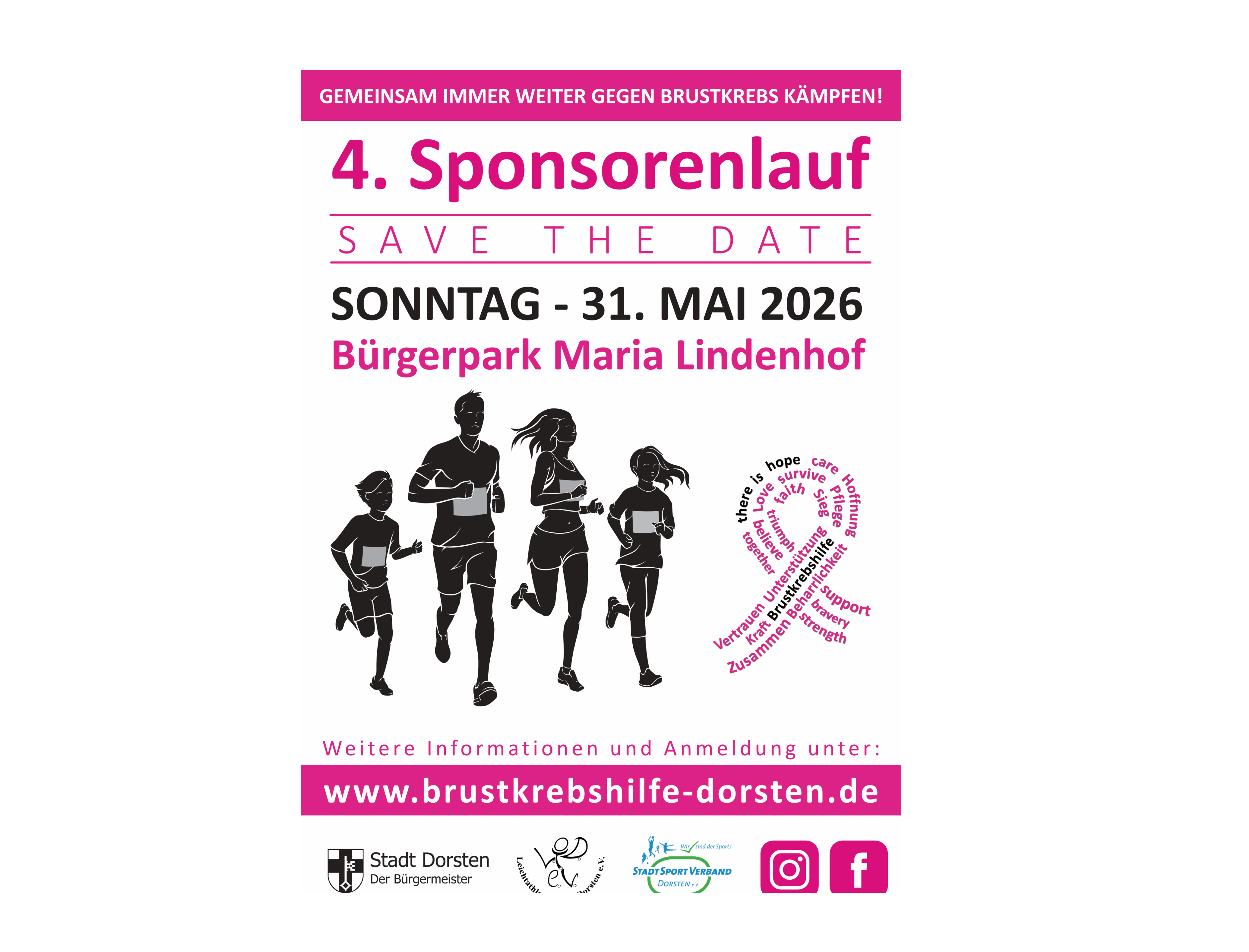 Am Sonntag, den 31.05.2026 findet der 4. Brustkrebs Sponsorenlauf statt, ausgehend von Maria Lindenhof.